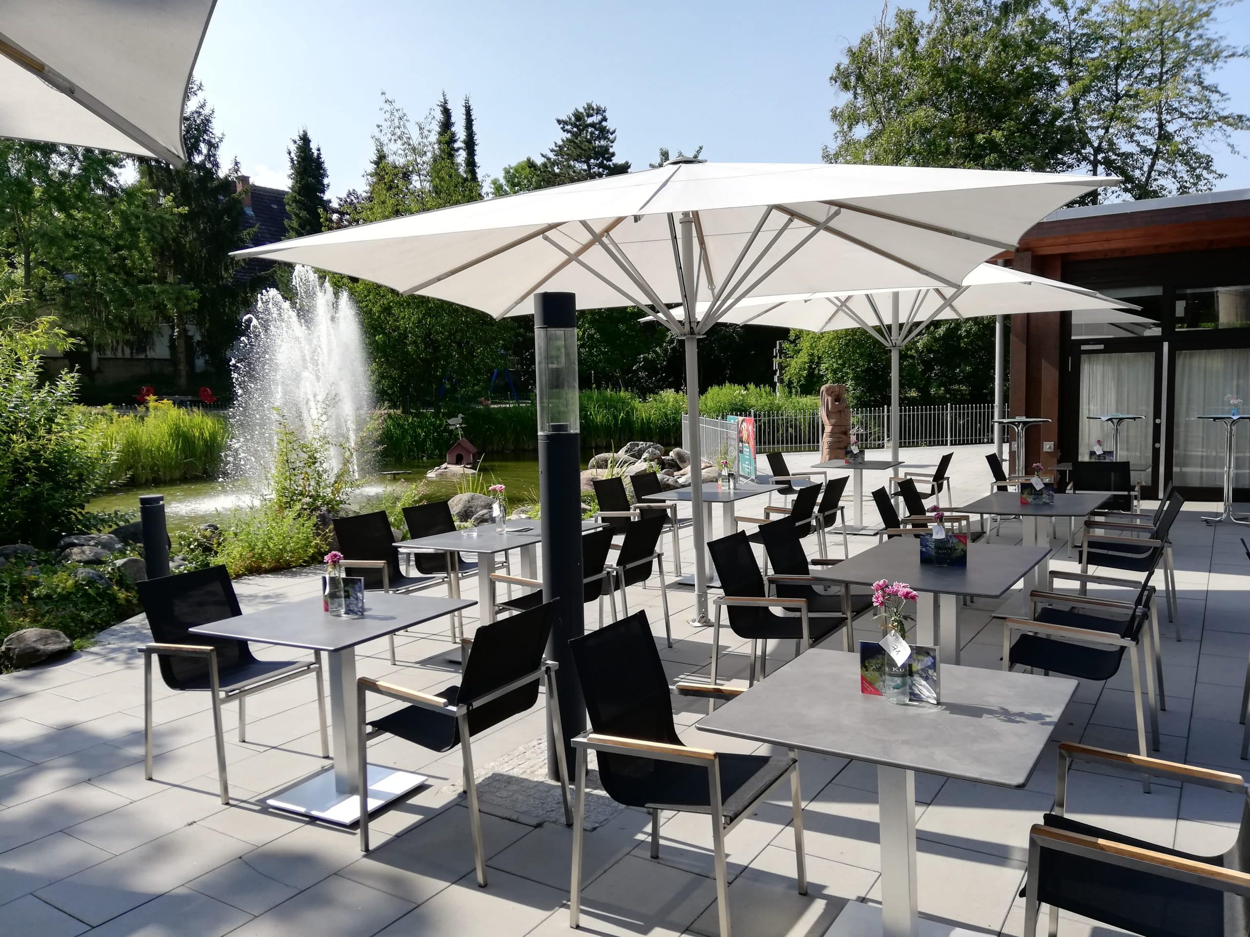 Auf unserer herrlichen Sonnenterrasse mit 80 Sitzplätzen können gemeinsame Sommerfeste in schöner Umgebung gefeiert werden. Mit Blick in den Park und auf den großen Teich können Sie so die gemeinsame Zeit mit Ihren Gästen genießen. Eine besondere Empfehlung zu einem Sommerfest im Freien ist ein Grillbuffet mit ausgewählten Spezialitäten, dass wir für Sie konzipieren.