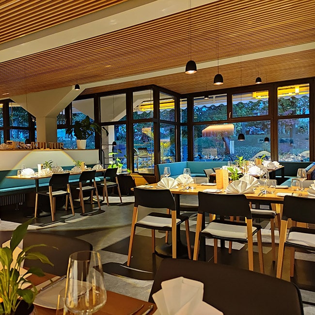 Das lichtdurchflutete Restaurant verfügt über 8o Sitzplätze im Innenbereich. Unter Einbindung der beiden Nebenräume lassen sich diese bis auf 12o Plätze erweitern. Unabhängig vom Restaurantbetrieb können sowohl das kleine als auch das große Nebenzimmer für kleinere Veranstaltungen gebucht werden. Neben einer modernen Einrichtung, gemütlicher Atmosphäre und Liebe zum Detail besticht die Küche mit kreativen Gerichten, die man mehr als einmal genießen möchte.